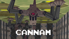 Cannam is a fairly large-sized, spider-like reaverbot that appears in the starting ruin of the game, and again in the Clozer Woods Sub-Gate (in a set of 3). These creatures are capable of walking on ceilings, and will try to land on you if you are positioned under them. They will also drop bombs (that can be kicked) in an attempt to harass you as well. They can actually leap from floor-to-celing rather quickly (and vice versa), and needless to say, are a rather startling sight on your first playthrough. They drop a moderately decent sum of zenny when defeated.