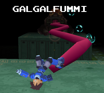 Galgalfummi's most common (and most annoying) technique. The massive frog opens his mouth and spits numerous bubble onto the field. These bubbles will follow you, and you have to shoot them down to get rid of them, although they do dissipate over time. They also dissipate if Galgalfummi himself lands on them.