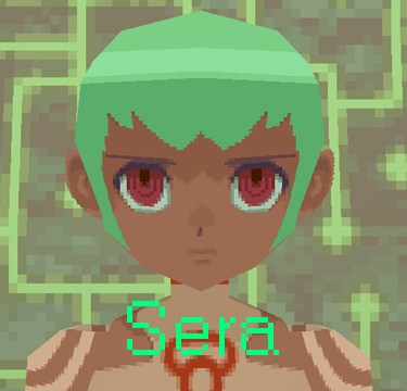 Sera dashes towards you, yells "Got you!", and proceeds to hover over you with 14 blue lasers being fired from under her. The best thing to do is keep running, and try to find a gap in the lasers if possible.